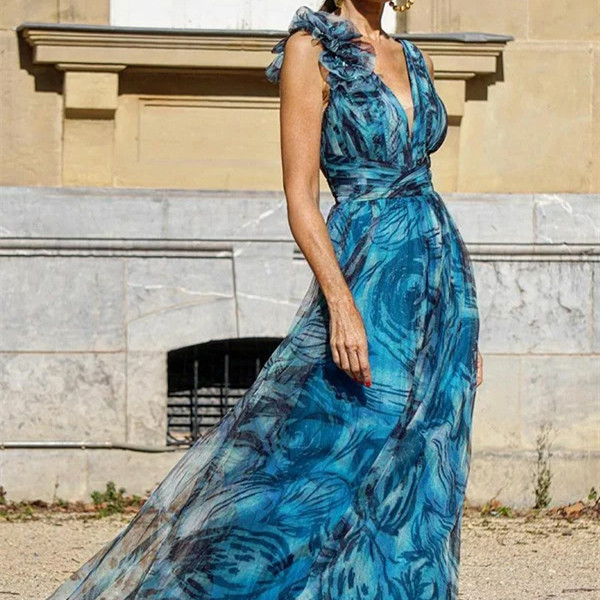 Embrace effortless bohemian elegance with this stunning floral printed maxi dress. Perfect for holidays, festivals, or casual summer days, this dress features a beautiful wind flower print and flattering wide hem design.