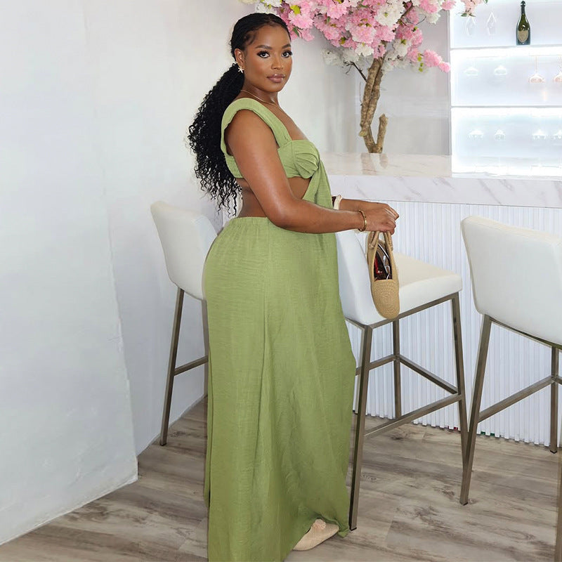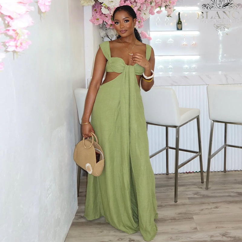 Embrace effortless style with our A European And American Leisure Tied Spaghetti-strap Trendy Jumpsuit. This chic one-piece combines the relaxed elegance of European leisure wear with American contemporary trends, featuring delicate spaghetti straps and stylish tie details. Enjoy complimentary delivery on this versatile fashion statement.