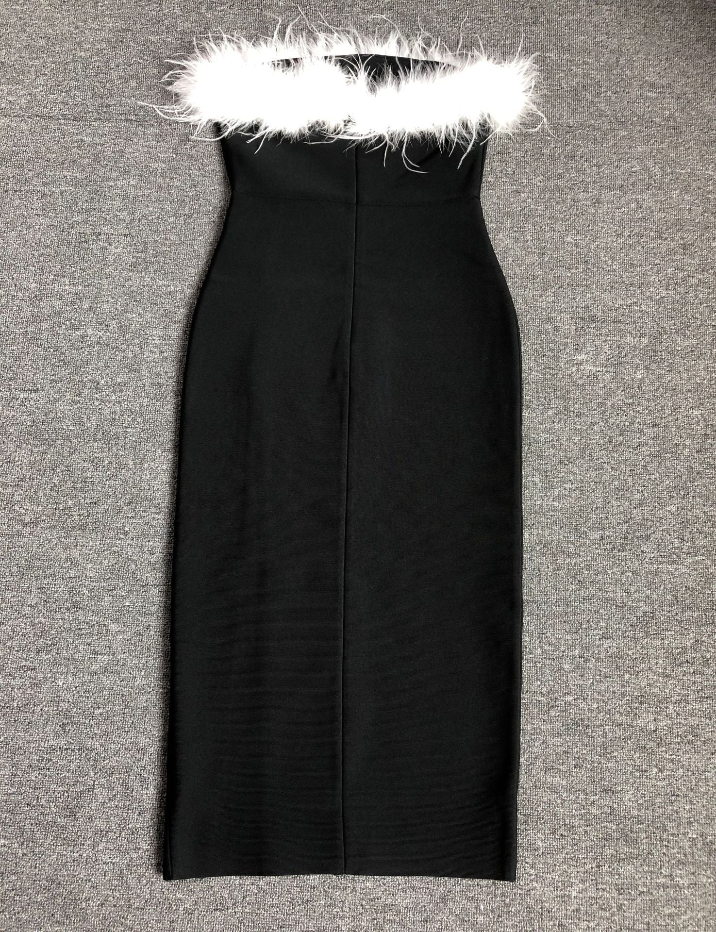 Experience the ultimate in luxury fashion with our A European And American Off-shoulder Contrast Color Ostrich Hair Tube Top High Slit Bandage One-piece Dress. With free delivery and unparalleled craftsmanship, this is more than a dress – it's a work of art.