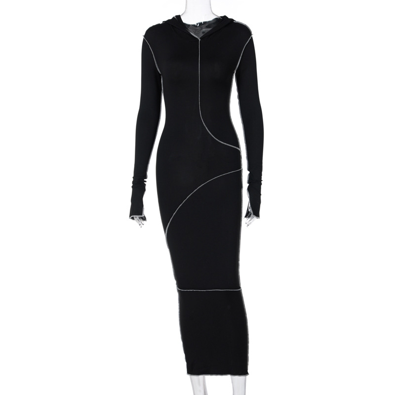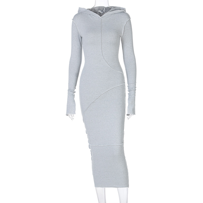 Reverse Stitch Long - Sleeved Dress With Hooded Hood