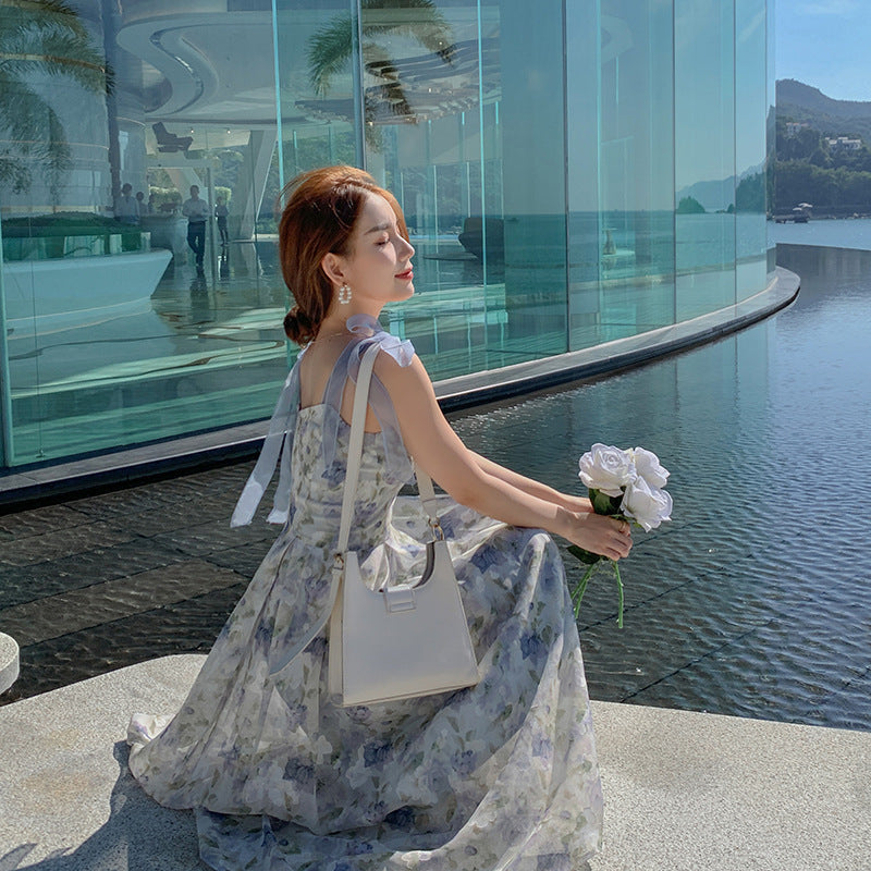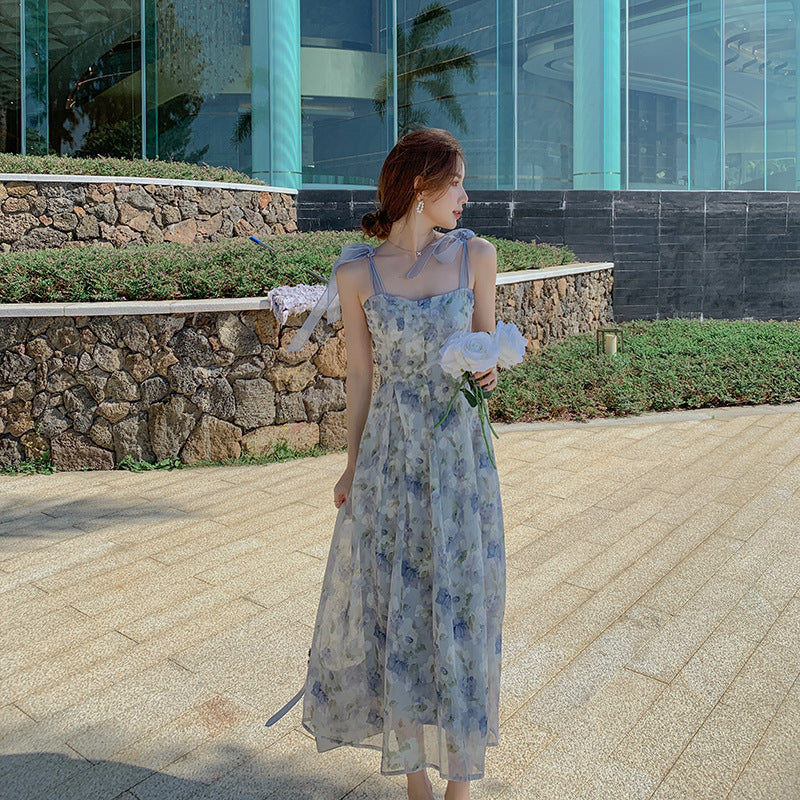 A Korean Tea Break French Niche Suspender Dress Oil Painting Style free delivery