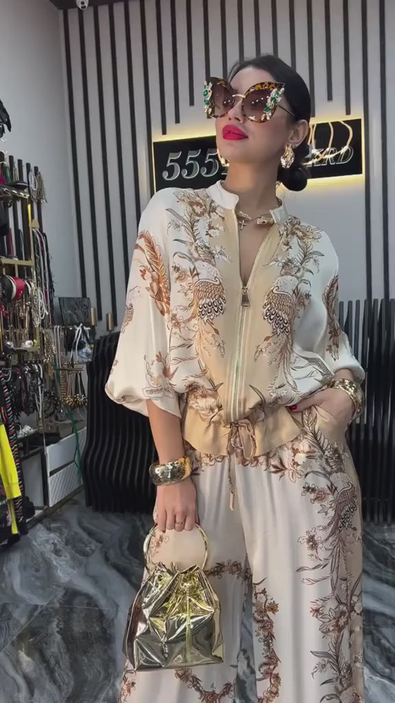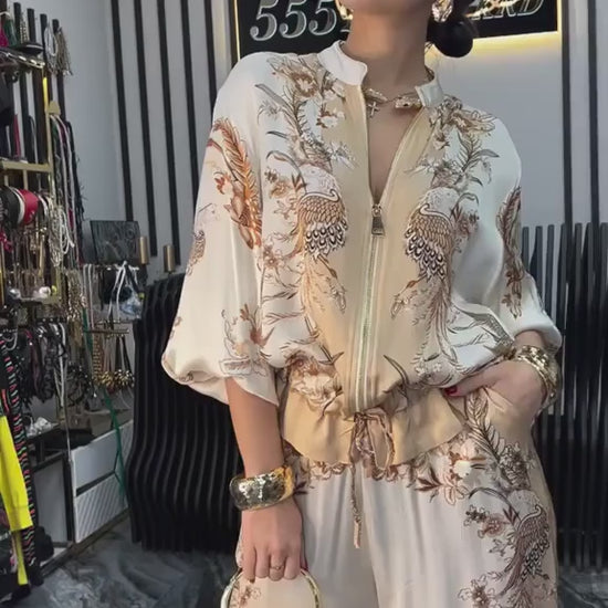 A Three-dimensional Printed Flowers Baseball Uniform Drawstring Trousers Two-piece Set
