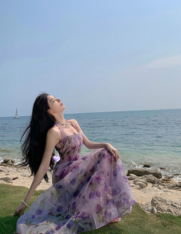 A Women's Backless Holiday Printed Halter Dress free delivery