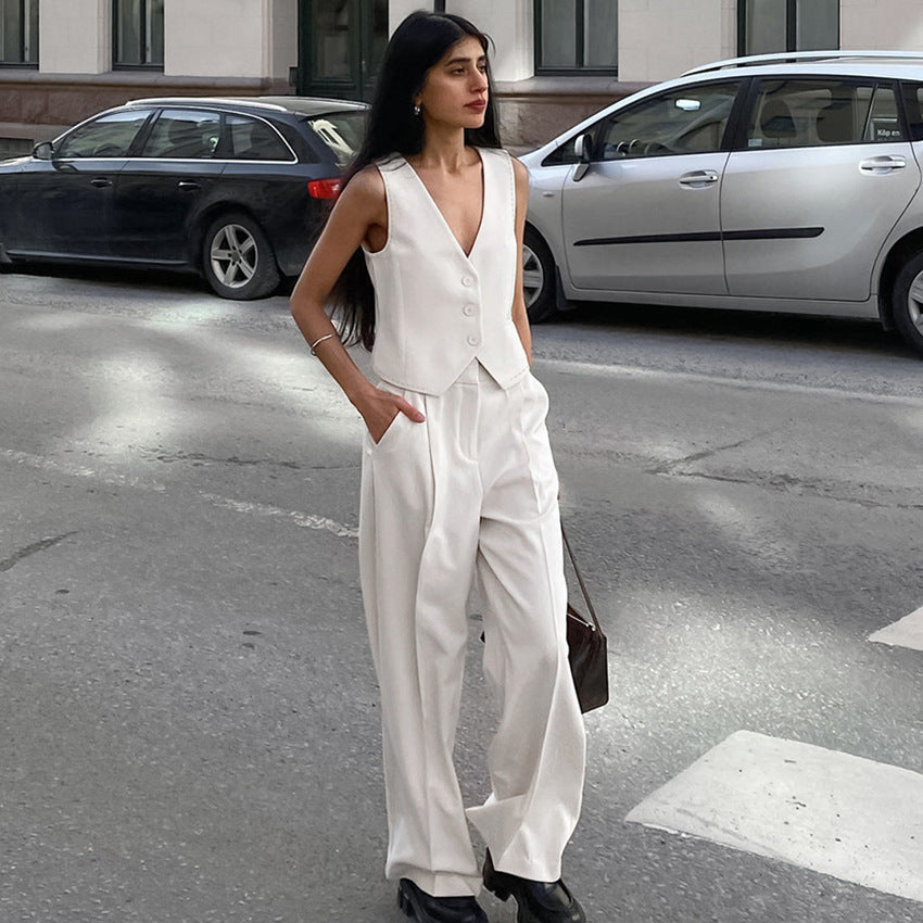 A Women's Graceful And Fashionable Vest Wide-leg Pants Two-piece Set free delivery