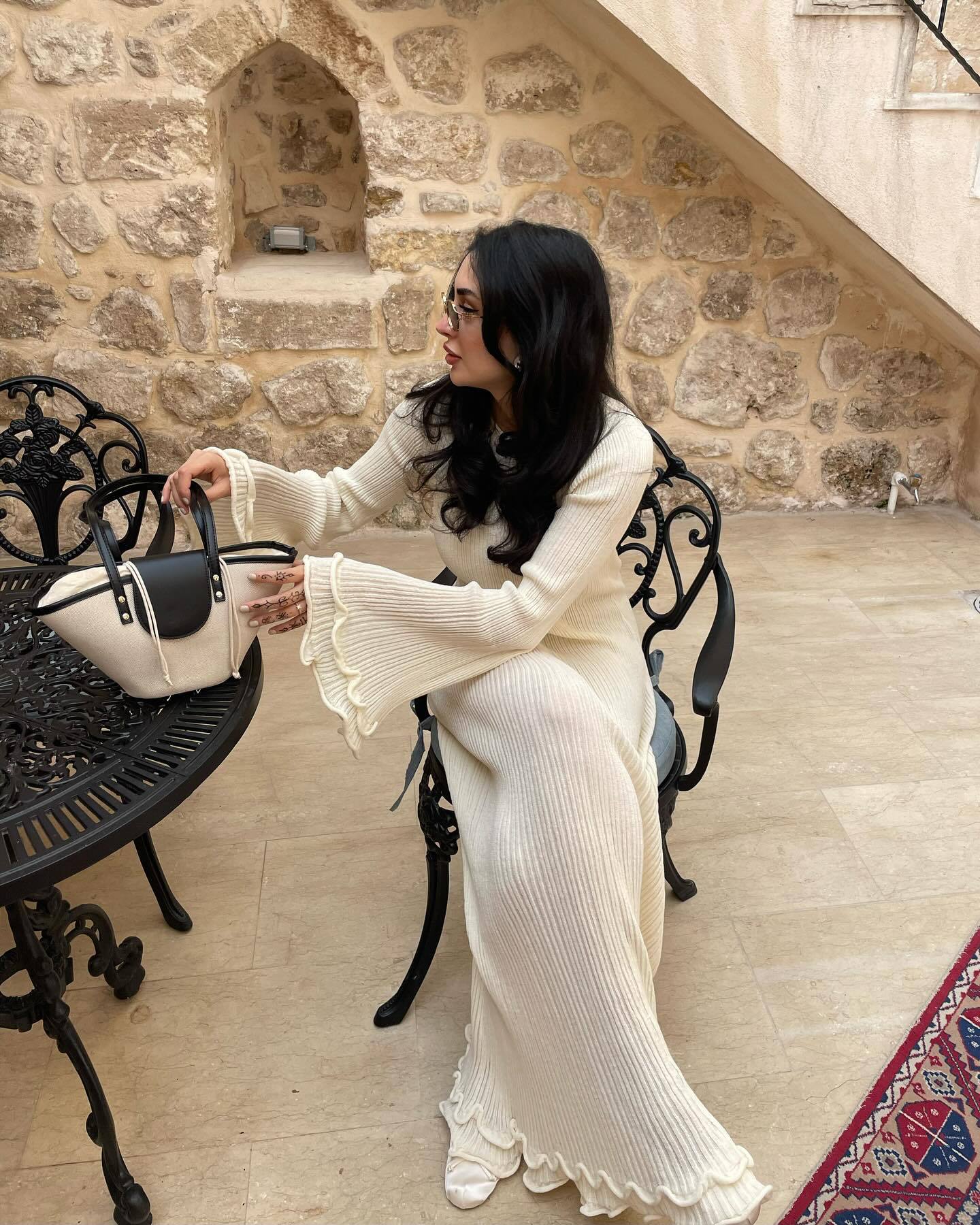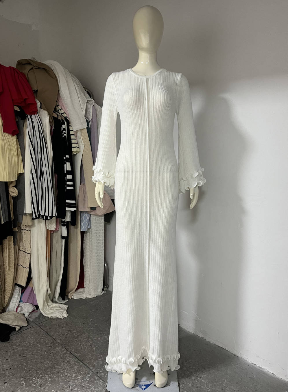 A Women's Pleated Wavy Backless Lace-up Long Sleeve Dress free delivery